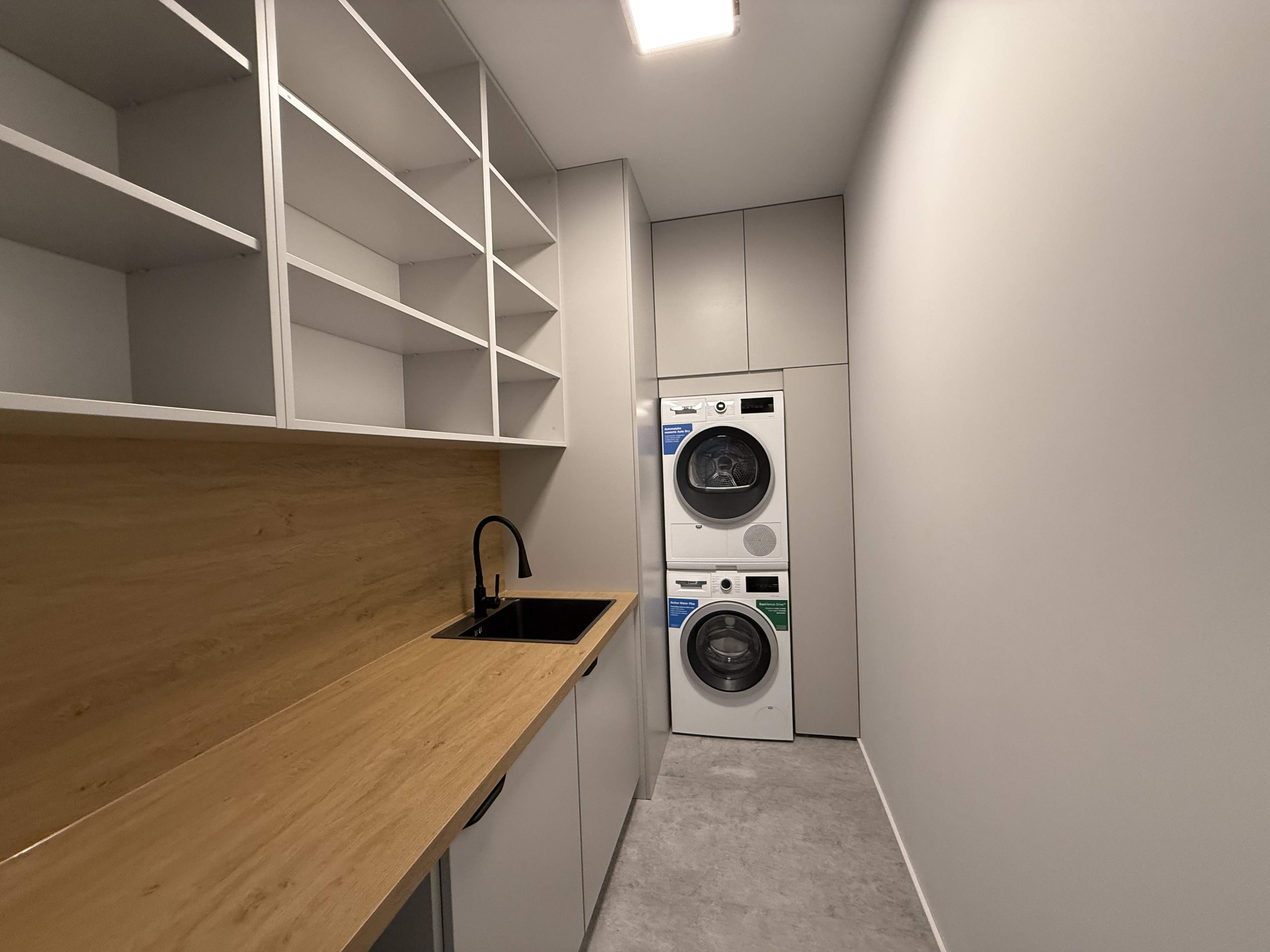 SALON Z ANEKSEM KUCHENNYM, KORYTARZ Z ZABUDOWĄ MEBLOWĄ, SYPIALNIA, SYPIALNIA, GARDEROBA, SYPIALNIA, ŁAZIENKA, ŁAZIENKA, ŁAZIENKA, PRALNIA.